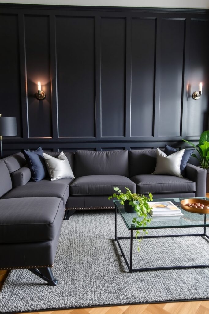 7. Charcoal Grey Sofa With Navy Panel Wall