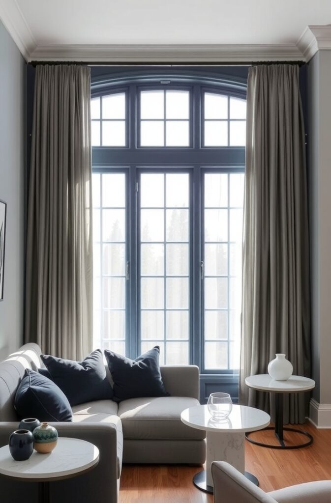 Instead of the usual white trim, paint your window frames navy. It adds structure, like eyeliner for your walls. Then hang soft grey sheers that catch the wind gently.