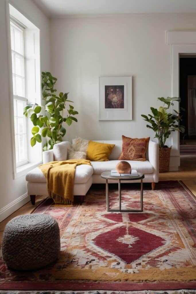 And hey, don’t bother if the edges curl a little or if one rug has a tiny hole. That imperfection makes the room breathe.