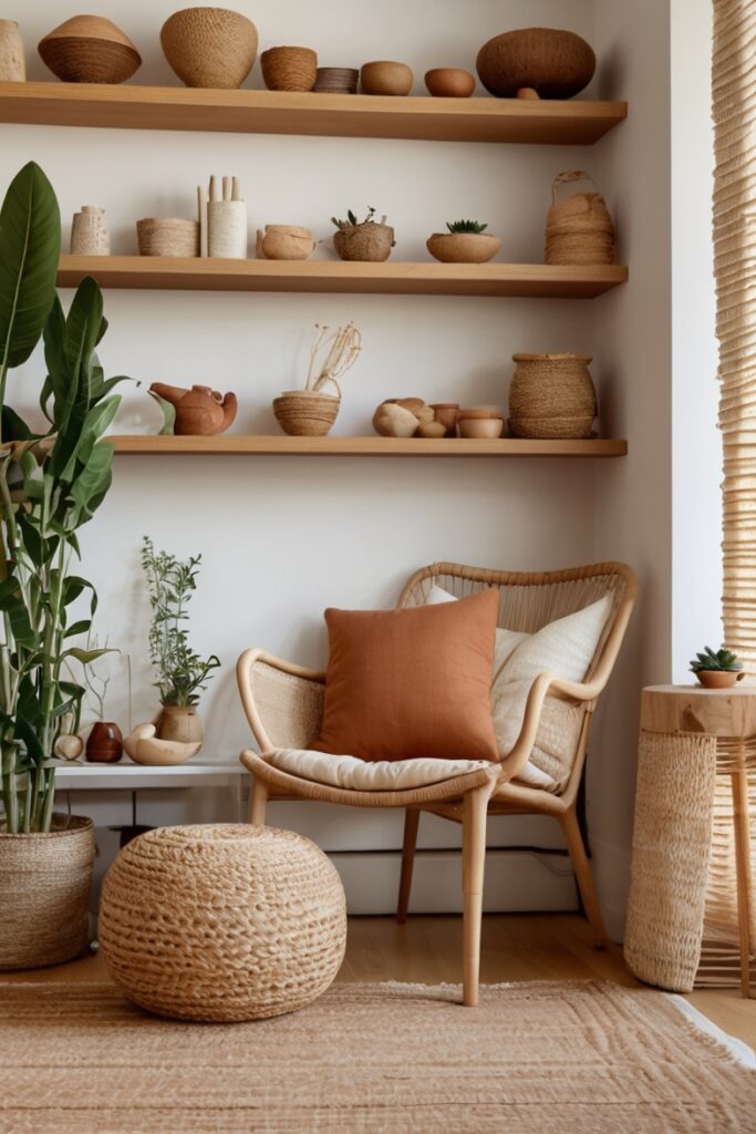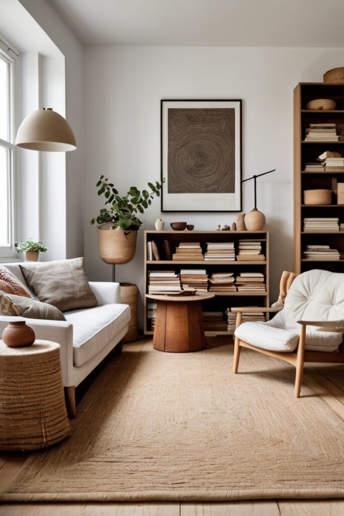 You’ll see fewer straight lines, more curves, and plenty of “perfect imperfections.” The key here is subtle contrast like a rough jute rug under a smooth oak coffee table. Or a lumpy ceramic vase holding one lonely dried branch. It’s restraint, but with a heartbeat.