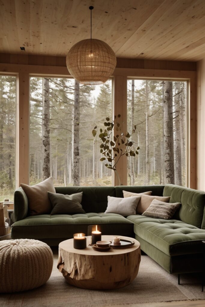 There’s a sense of connection here, to nature and to things that last. Furniture wears earthy tones and simple silhouettes. You’ll find thick wool throws in dark olive or moss. Maybe even a forest-green velvet armchair sitting quietly by the window.