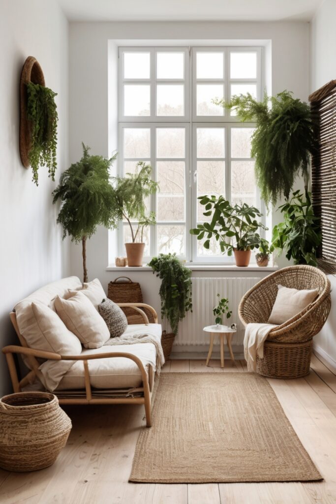 Large leafy plants like fiddle figs and monsteras breathe life into pale rooms. Terracotta pots, rustic planters, maybe even a hanging moss wall they all fit in beautifully against soft neutrals. The air feels fresher, literally and visually.