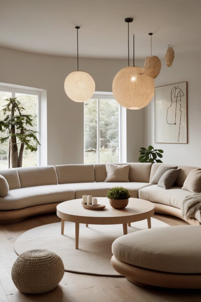 Scandi design in 2025 is obsessed with movement rounded furniture layouts, curved sofas, oval rugs, and looping light fixtures that guide your eyes in gentle circles. There’s no harsh angle anywhere.
