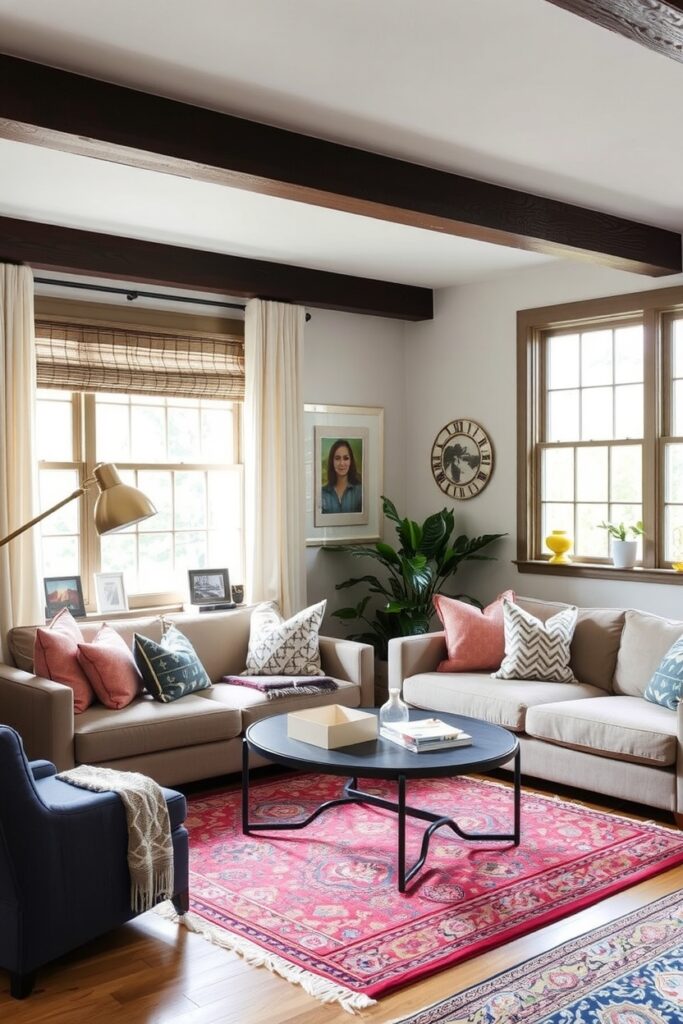 Even small living rooms can have “zones.” Create a reading corner with a floor lamp, a tiny work area near the window, a chat zone by the sofa.