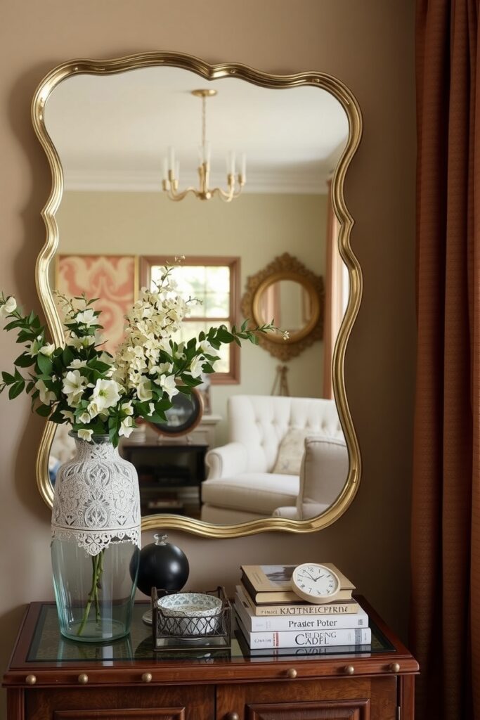 Forget plain mirrors. Try wavy-edged ones, tinted ones, even a cluster of small, round mirrors that reflect light like bubbles.