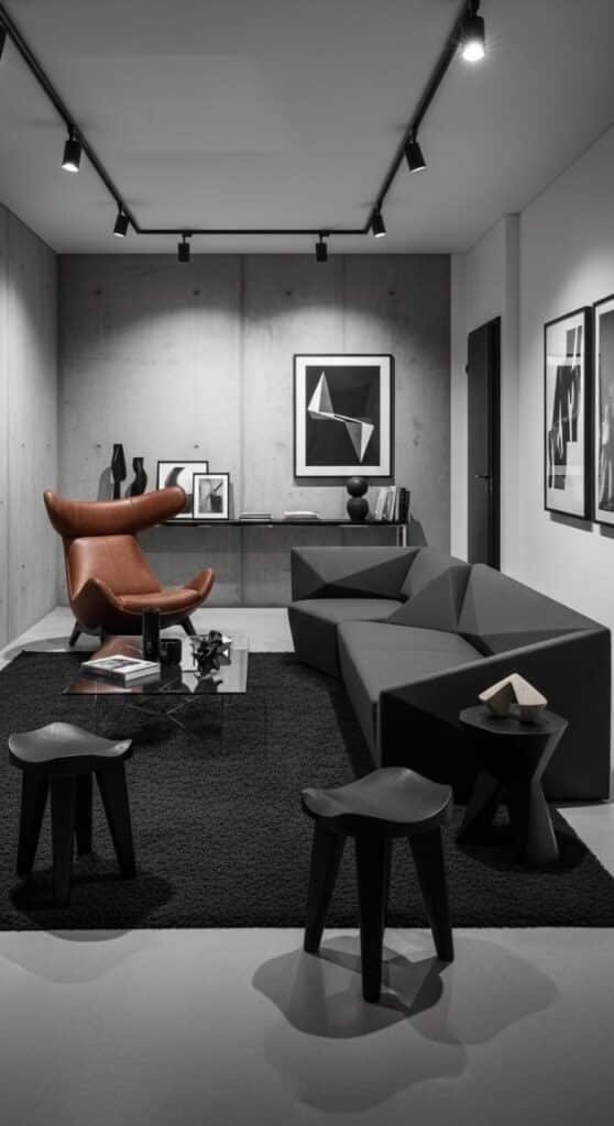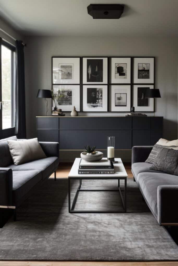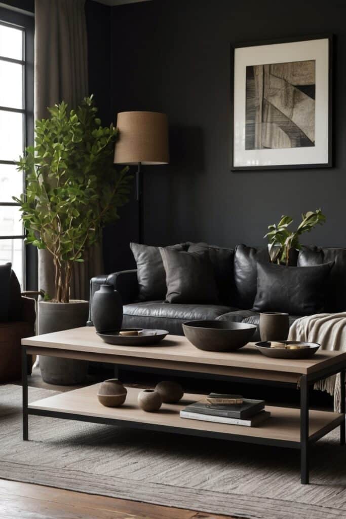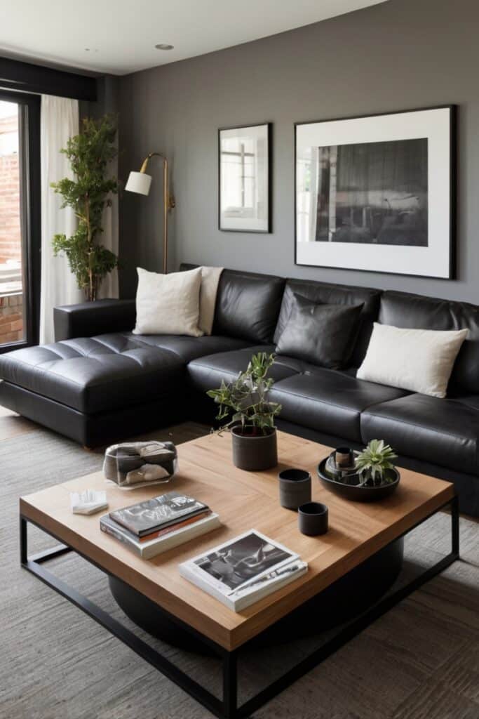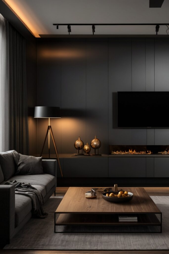 It’s minimal, modern, and perfect for masculine living rooms. Everything feels precise, balanced, and under control like the space belongs to a man who knows exactly what he wants.