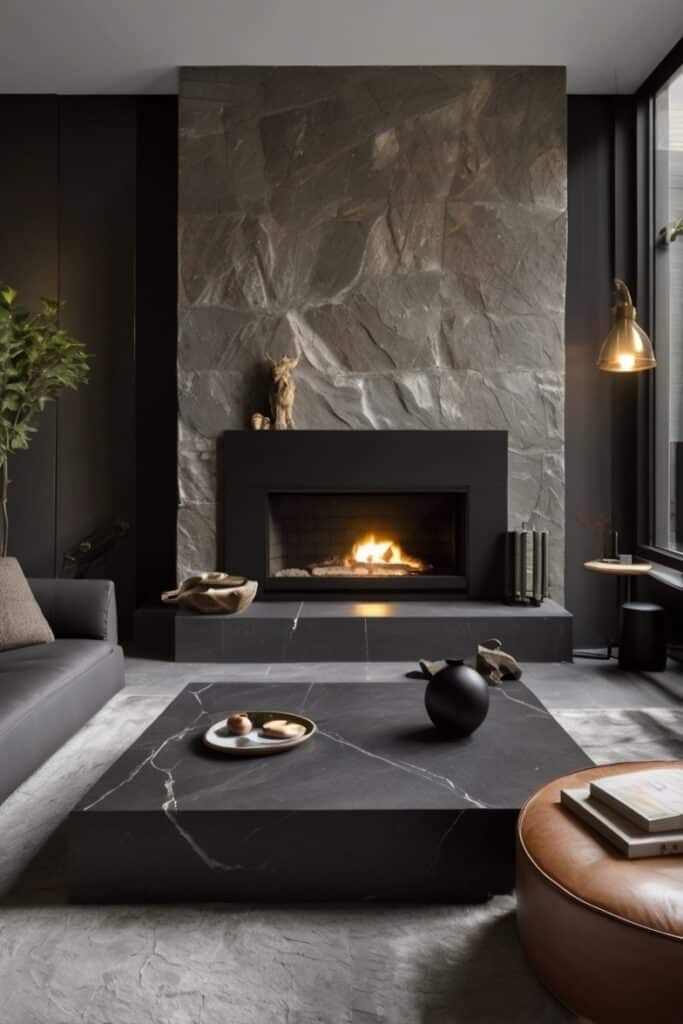 Stone isn’t just for fireplaces anymore. A concrete side table, a slate accent wall, or even marble shelves create solidity in a small masculine room. Stone carries weight literally and visually and gives the room permanence.