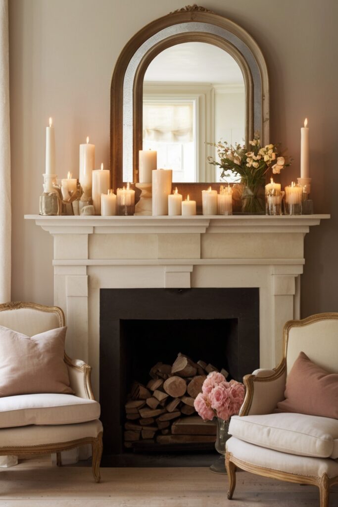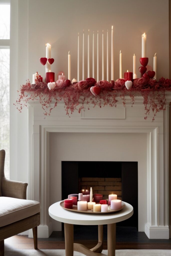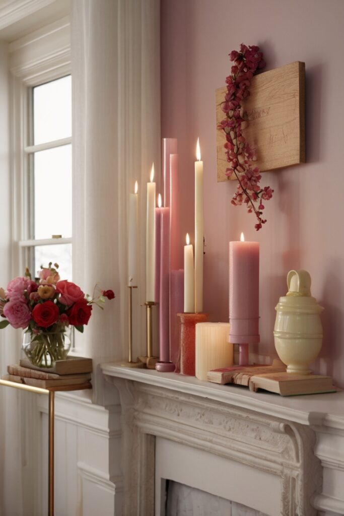 Romantic Valentine’s mantel decor ideas in 2026 lean heavily on sculptural candles with personality.