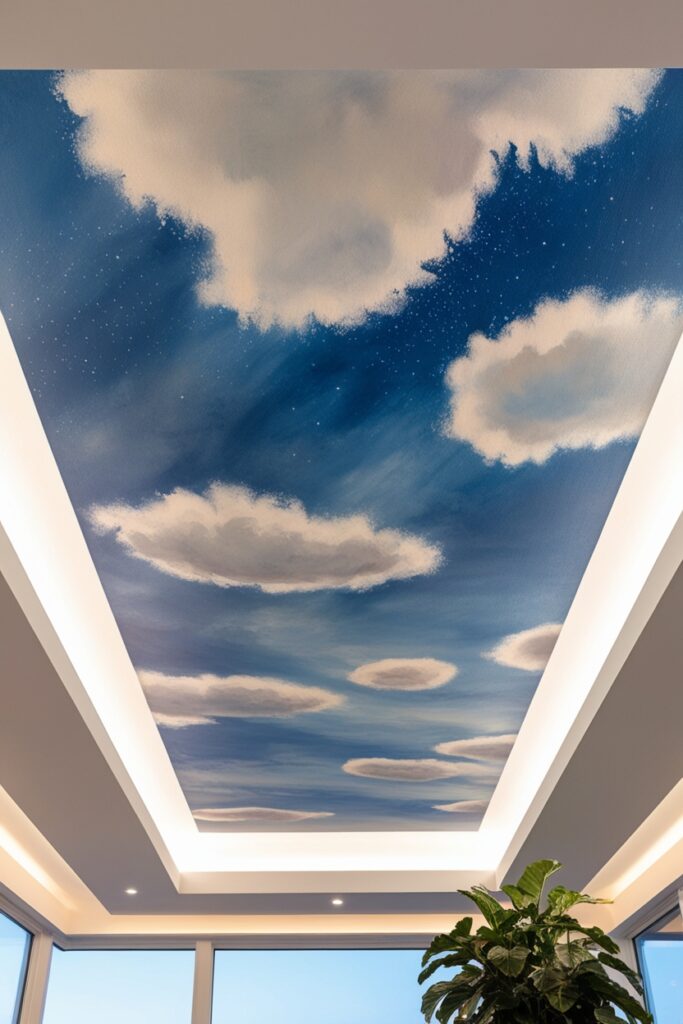 We’re seeing hand-painted or digitally printed murals of soft clouds, twilight blues, or faded stars in high-end homes for 2025.