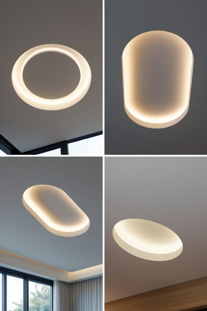 Designers in 2025 are cutting shapes into ceilings circles, slits, arches and fitting LED strips inside the cavities.