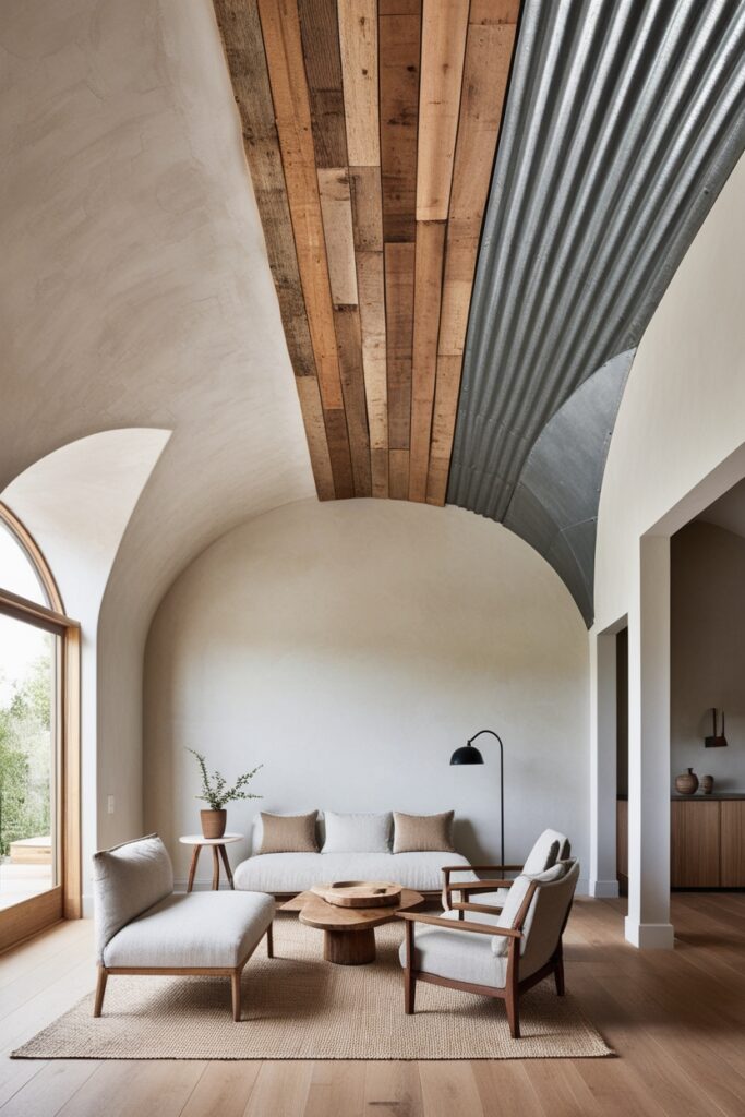 For years, exposed beams meant wood. But in 2025, exposed metal is having a moment. Think brushed brass arches, matte black iron trusses, or even copper frameworks running along the vault’s shape.
