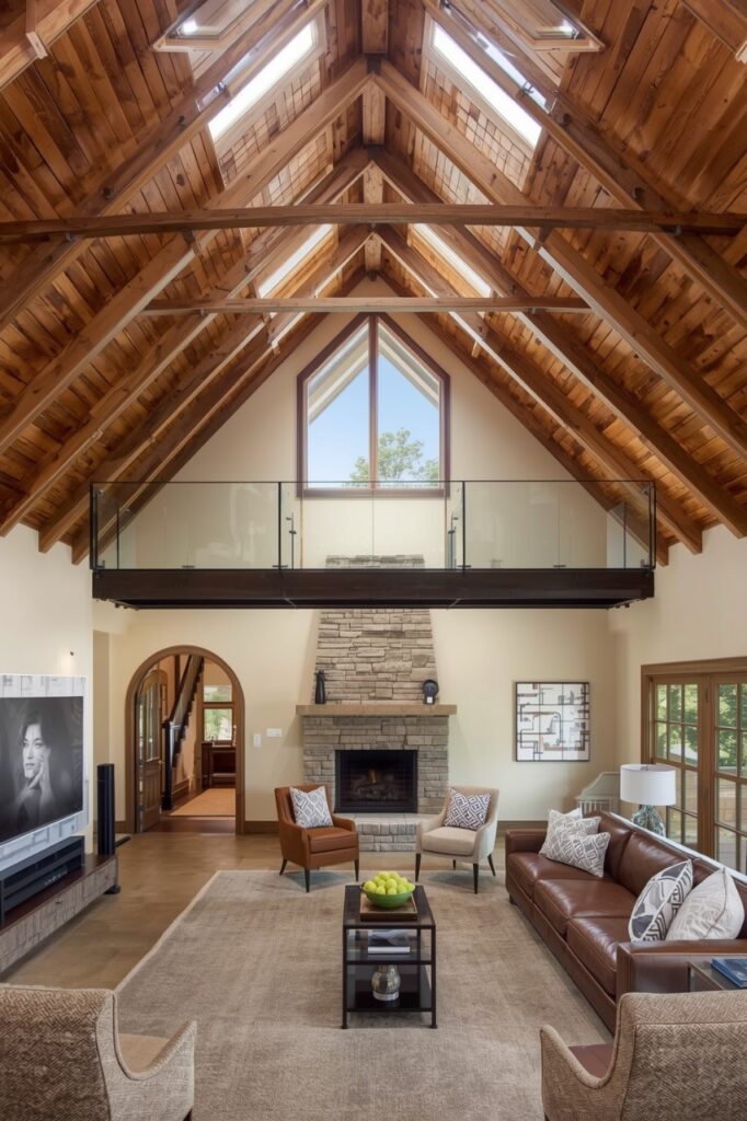 It’s architectural whimsy at its finest. Especially for smaller homes, this makes the vaulted ceiling not just beautiful but functional. A secret perch in the sky, right above the living room chatter.