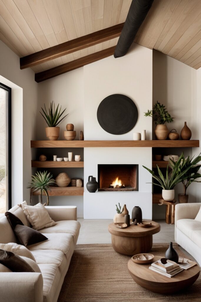 Then toss in a few handcrafted clay pots and a raw-edge wood coffee table.