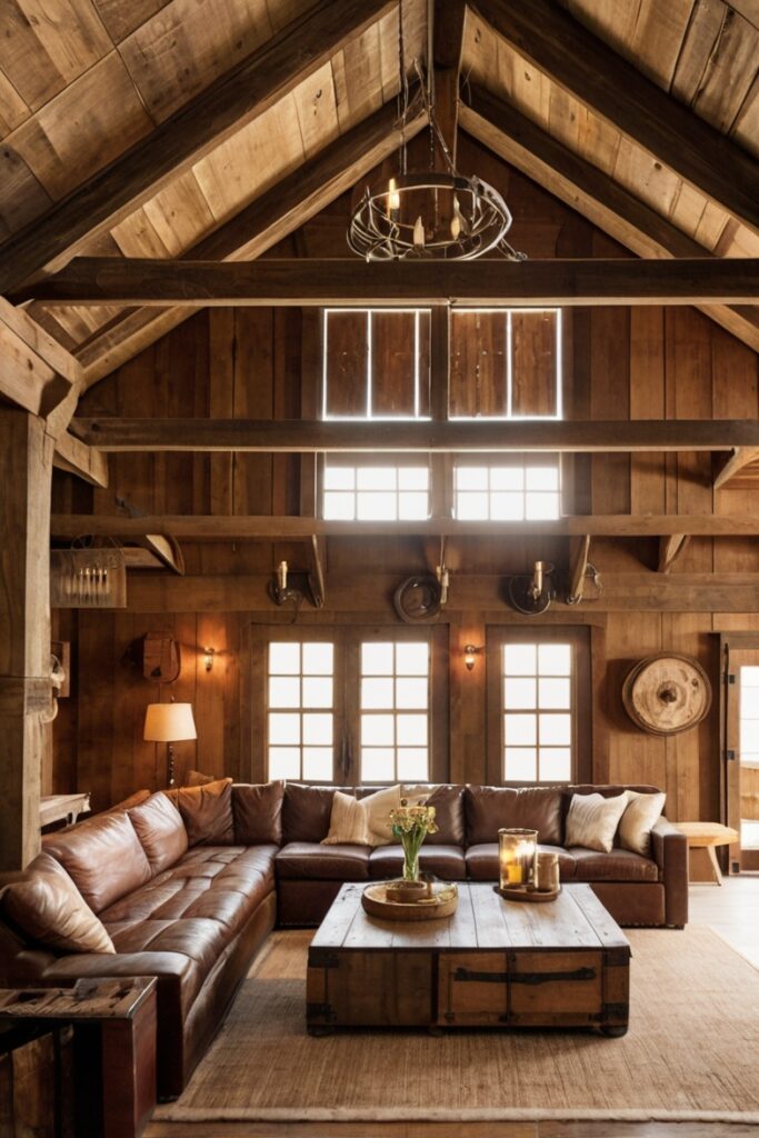 Add in contemporary furniture in earthy tones, and the old barn suddenly feels sophisticated.