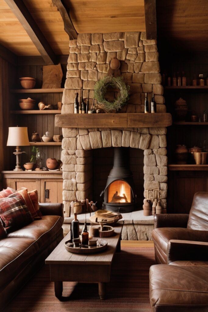 Whether it’s a stone hearth, a cast-iron stove, or even a flickering wall-mounted fireplace, the glow defines the mood.