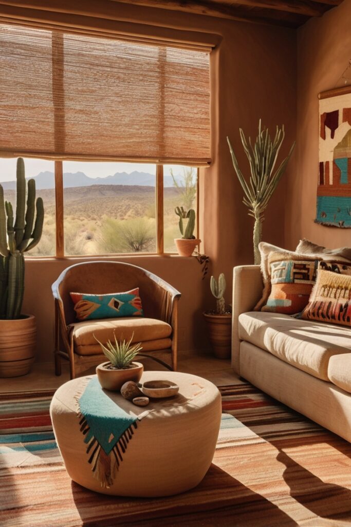Textiles carry Navajo-inspired prints, geometric but gentle.
